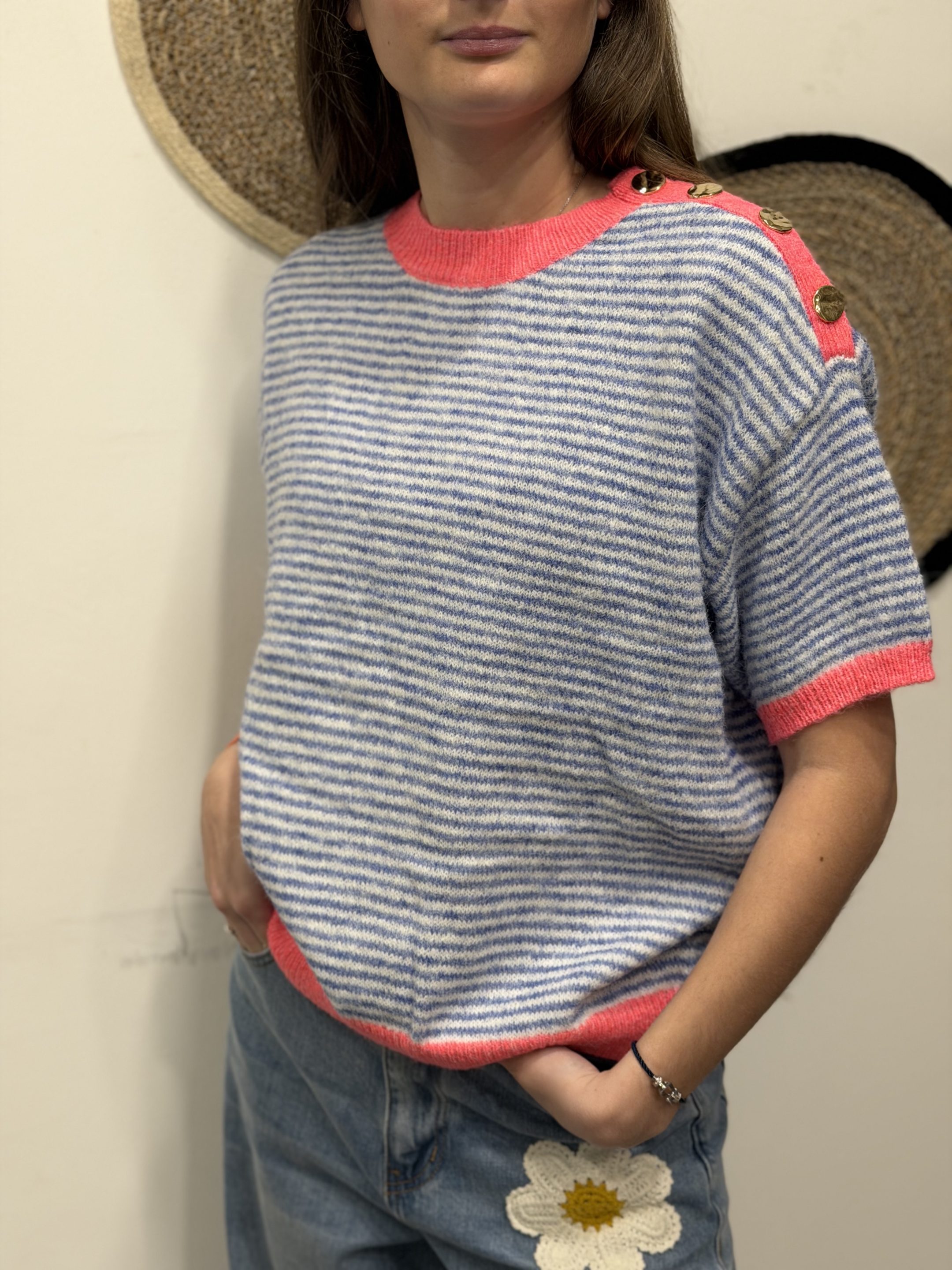 Pull manches courtes en maille douce – Bleu ☀️